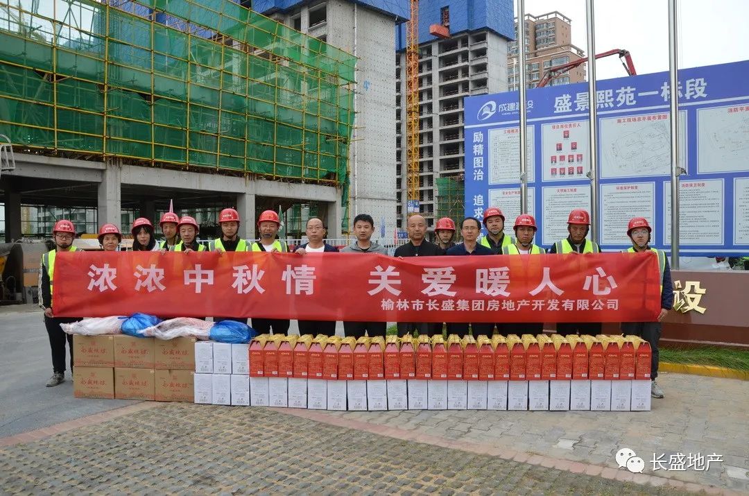 9月20日上午,在中秋佳節(jié)來臨之際,榆林市長盛集團房地產(chǎn)開發(fā)有限公司總經(jīng)理徐遼飛帶隊來到盛景熙苑、盛景馨苑、盛景博苑在建項目現(xiàn)場看望一線員工,將月餅、水果等慰問品送到他們手中。公司副總經(jīng)理劉世斌、總工程師曹光軍、總經(jīng)理助理楊斌等一行參加此次慰問活動。
