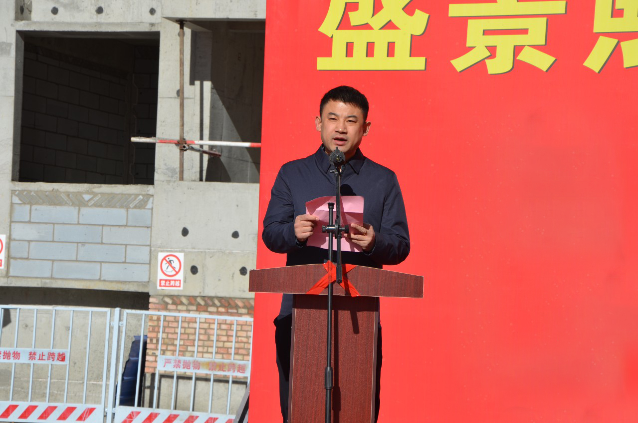 徐遼飛在致辭中向奮戰(zhàn)在一線的各參建單位表示衷心的感謝和誠摯的敬意。他指出,盛景熙苑主體結構的順利封頂,標志著項目工程建設取得了關鍵性階段成果,為后續(xù)工作開了個好局。他希望,各參建單位進一步壓實主體責任,加強協(xié)作,確保項目按期、保質、順利竣工。