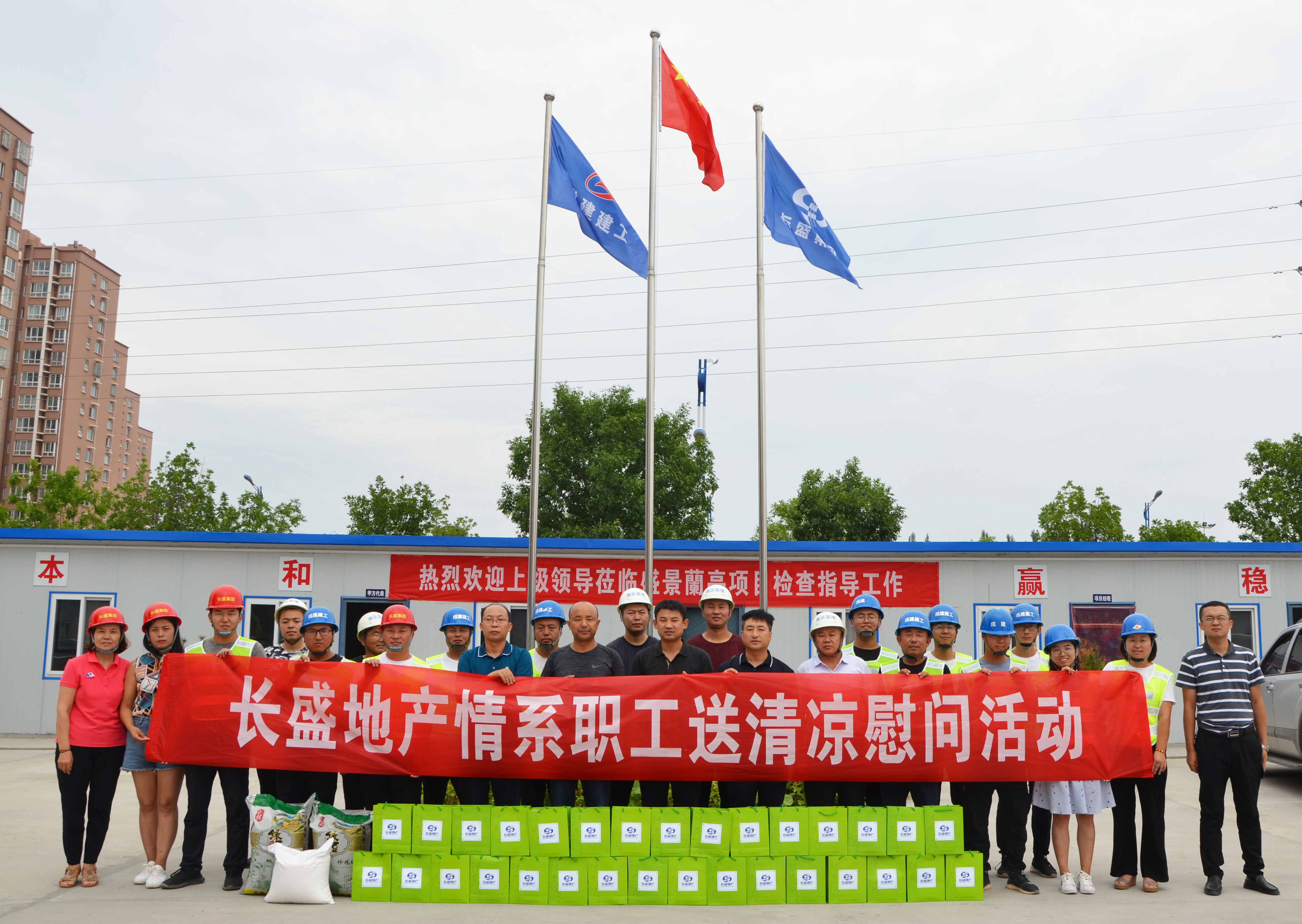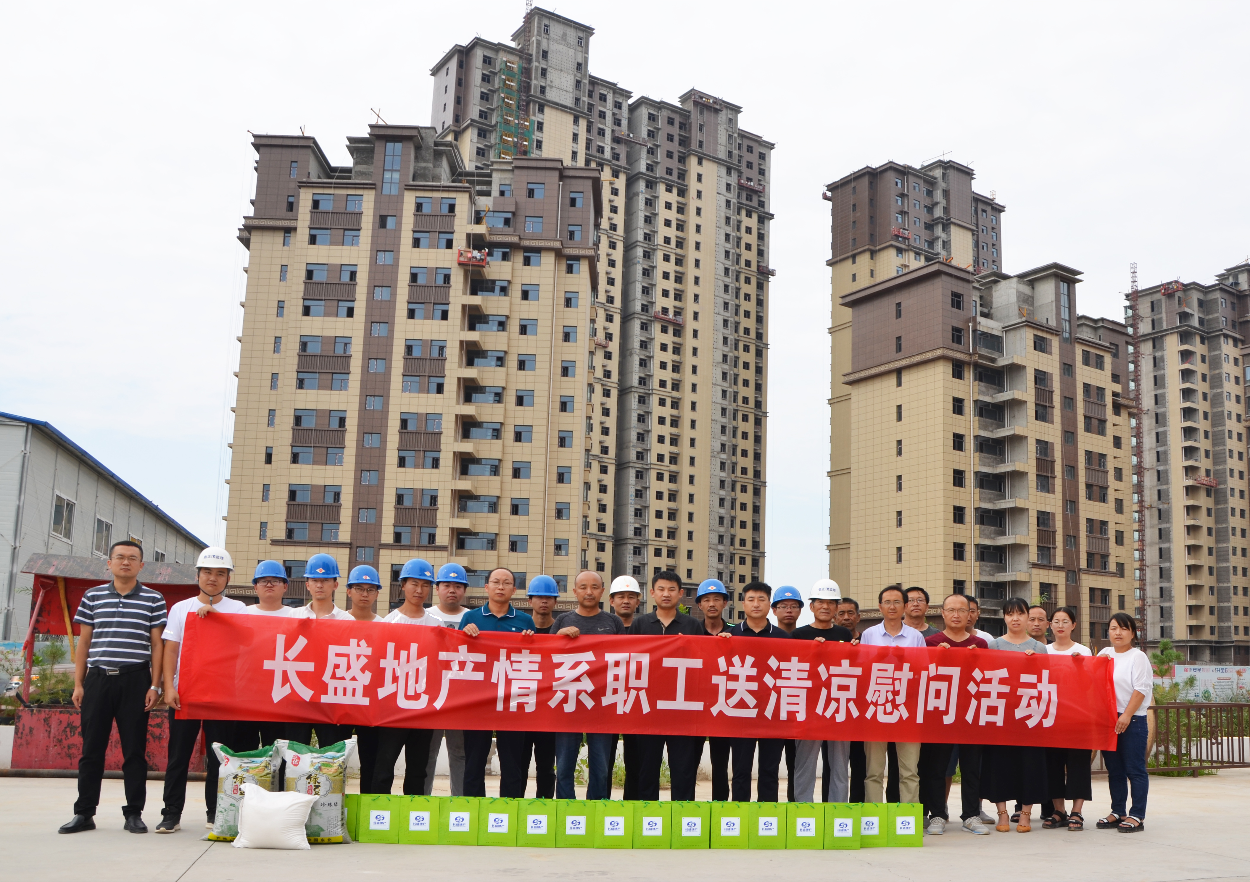 立秋未入秋,高溫仍持續(xù)。8月11日,長盛地產(chǎn)公司總經(jīng)理徐遼飛、副總經(jīng)理劉世斌、總工程師曹光軍及相關(guān)部門負(fù)責(zé)人一行走進公司盛景蘭亭項目部、流水馨城項目部和盛翔華庭項目部,開展“情系職工送清涼”慰問活動,為一線職工送上了親切的問候和防暑降溫物品,也為這個高溫伏天帶來了絲絲清涼。