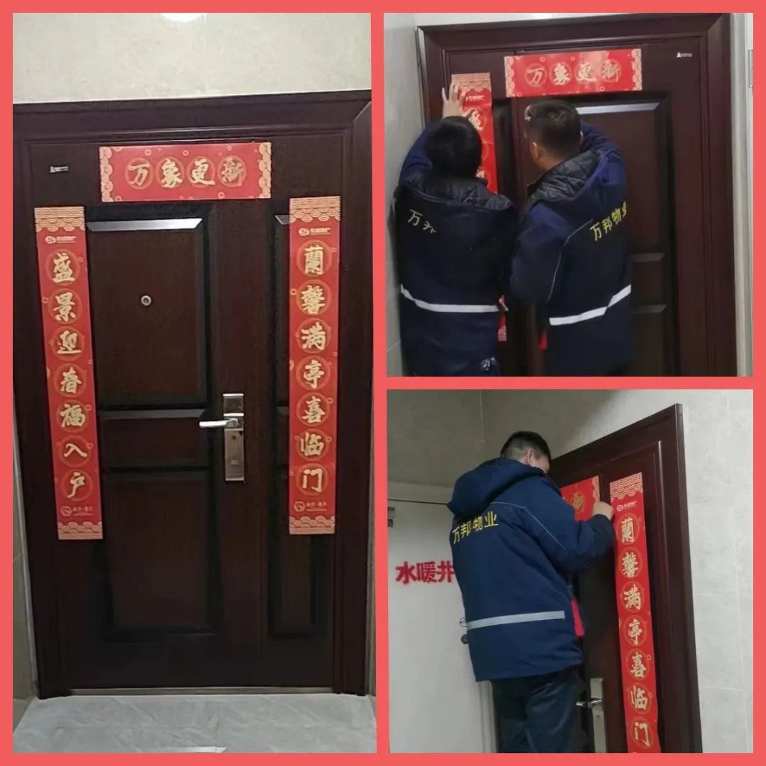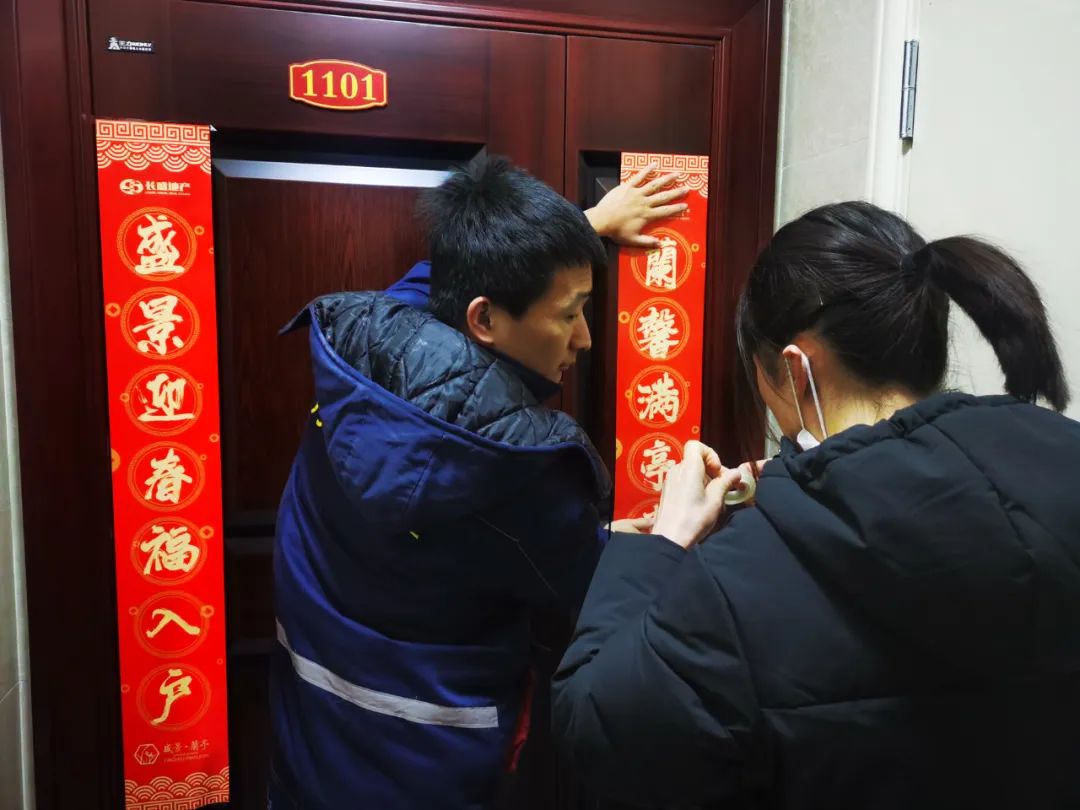 俗話說,無聯(lián)不成春,為了讓小區(qū)業(yè)主未入住的"新"房,也增添上濃濃的新春氣息。盛景蘭亭物業(yè)服務(wù)中心客服管家,主動(dòng)聯(lián)系未裝修業(yè)戶幫忙貼春聯(lián),希望通過貼春聯(lián)活動(dòng),彌補(bǔ)在外地不能回家過春節(jié)的遺憾。