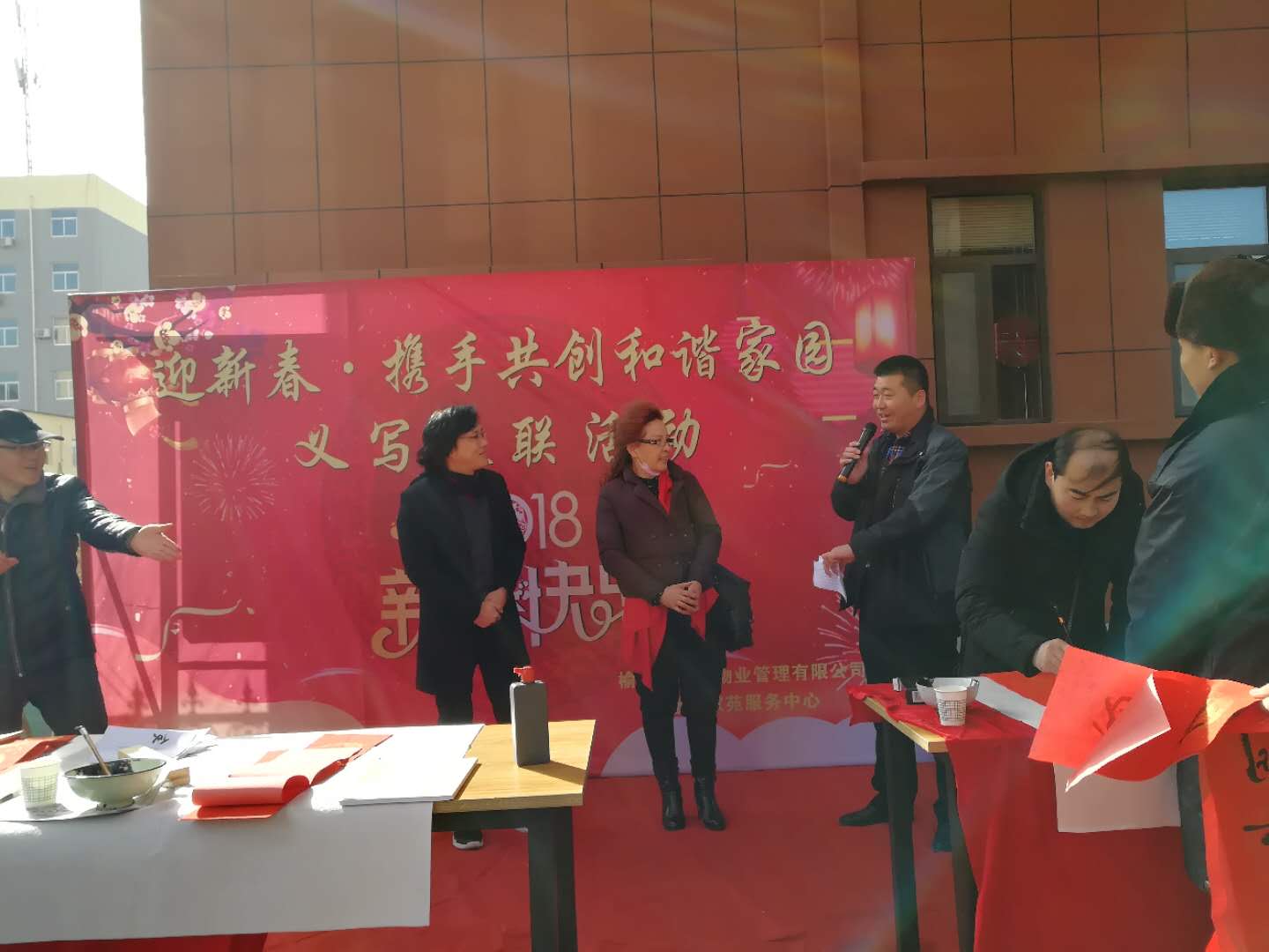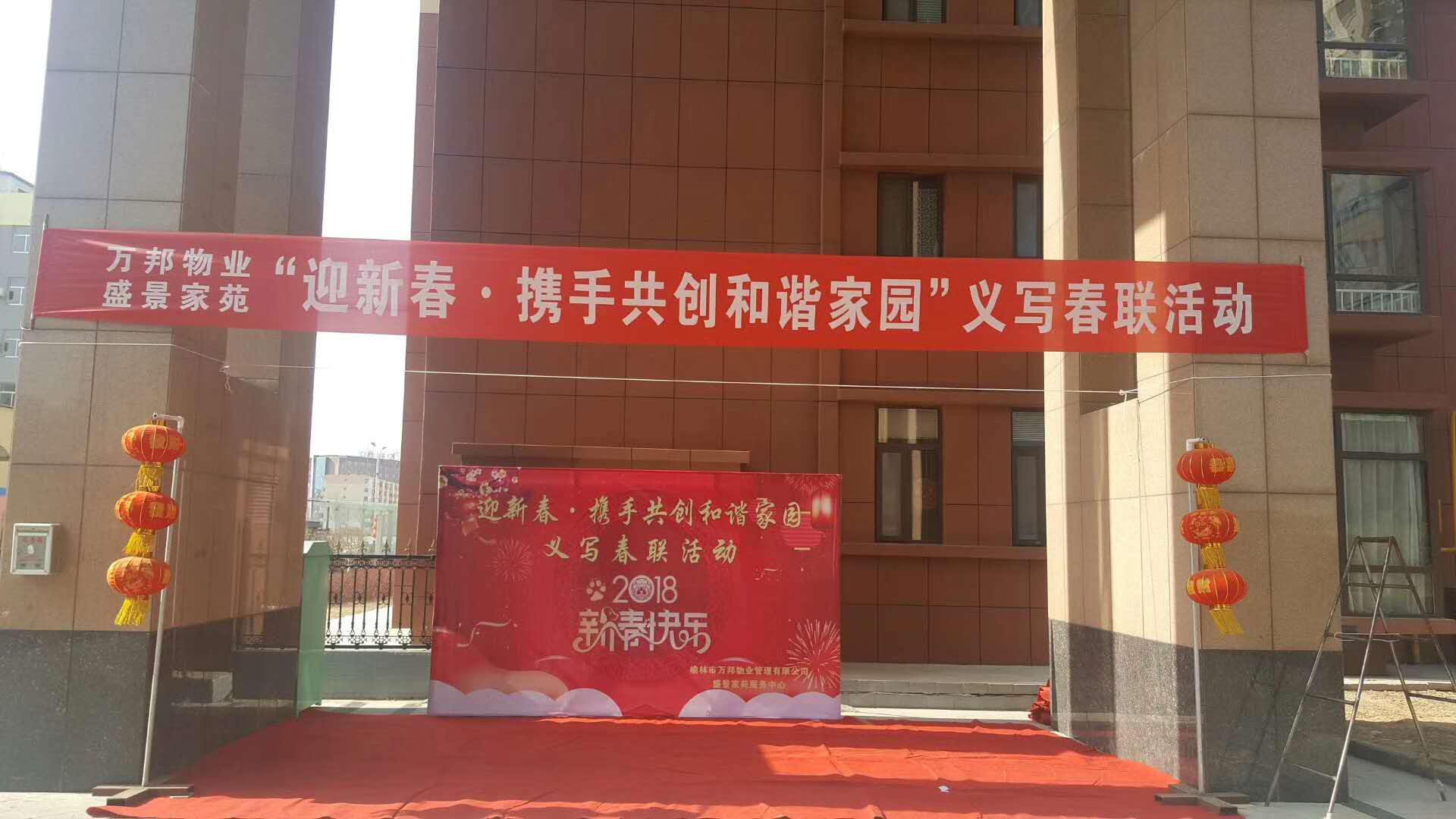 公司為喜迎新春,營(yíng)造歡樂(lè)和諧的春節(jié)節(jié)日氛圍,同時(shí)增進(jìn)業(yè)主的鄰里關(guān)系,進(jìn)一步弘揚(yáng)傳統(tǒng)文化,榆林市萬(wàn)邦物業(yè)管理有限公司于2018年2月8日舉辦了盛景家苑小區(qū)“迎新春·攜手共創(chuàng)和諧家園”義寫(xiě)春聯(lián)活動(dòng)。
