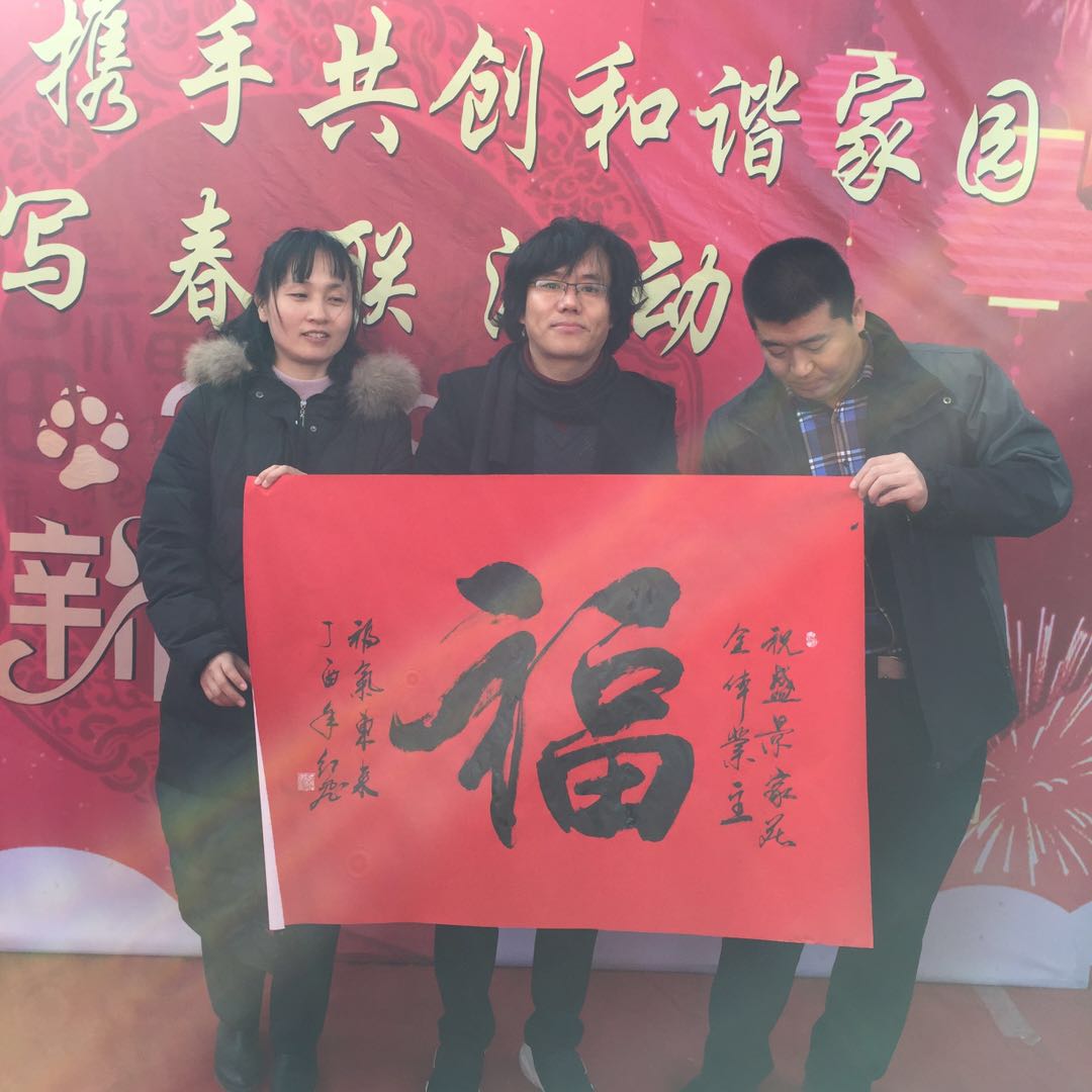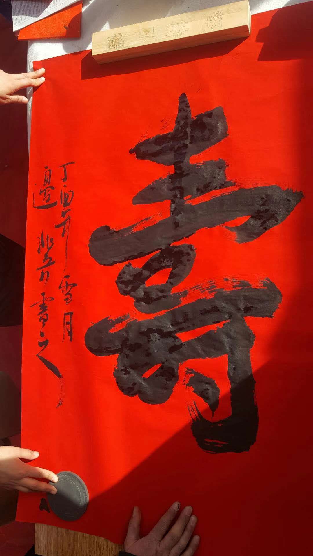 書(shū)法家們揮毫潑墨,書(shū)寫(xiě)了多幅大紅春聯(lián),其中拓宏飛先生為盛景家苑全體業(yè)主書(shū)寫(xiě)了大大的“福”字,表達(dá)對(duì)全體業(yè)主的美好祝愿。
