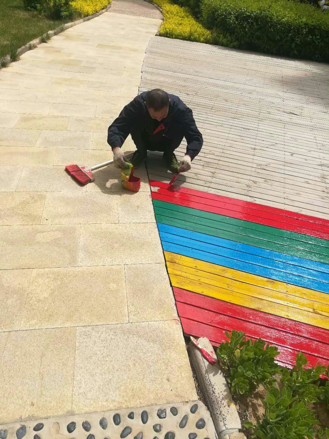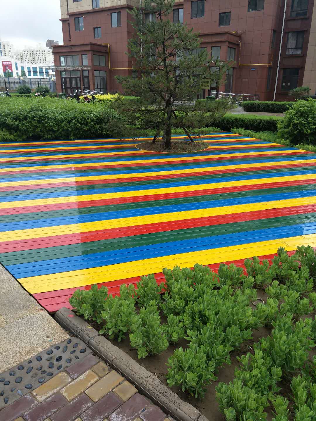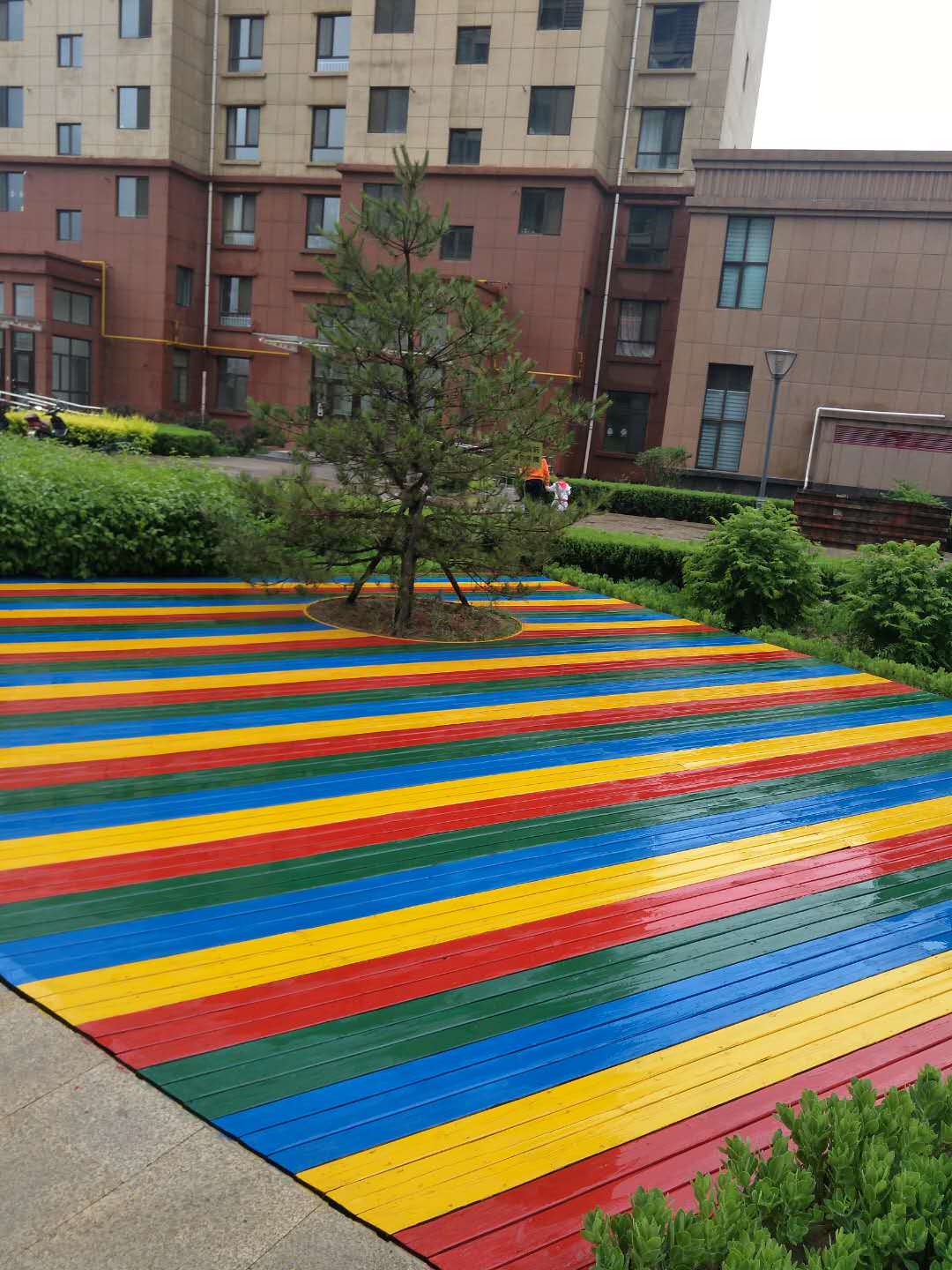 6號(hào)樓后面木質(zhì)場(chǎng)地活動(dòng)區(qū)域涂出彩虹色線(xiàn)條,為兒童創(chuàng)建了一個(gè)新“游樂(lè)場(chǎng)”。