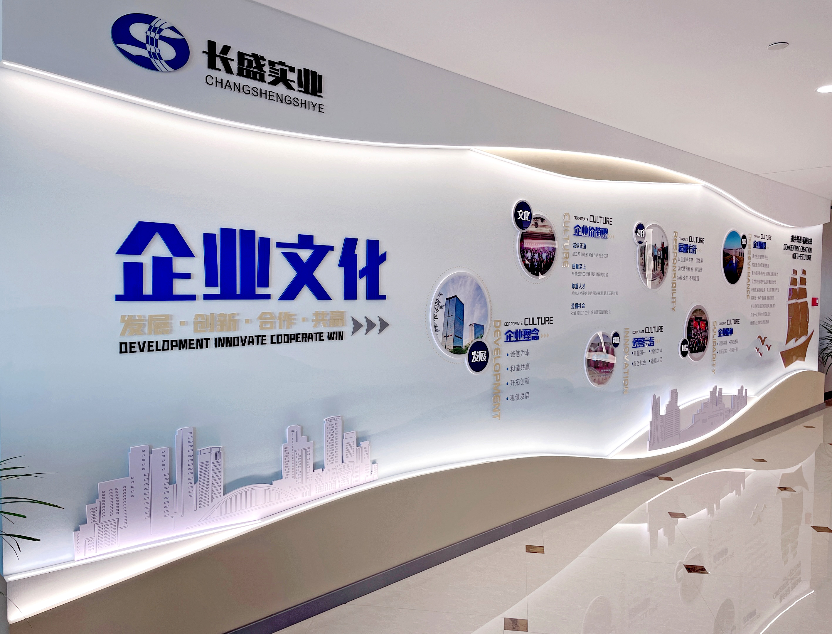 企業(yè)文化墻是集企業(yè)文化精髓、企業(yè)員工精神風貌、企業(yè)團隊精神風采、企業(yè)開拓創(chuàng)新等文化元素于一體的文化展示窗口。它體現(xiàn)了企業(yè)的文化理念,宣揚了公司的信念和品牌文化,使員工在潛移默化中,感受到公司品牌文化的影響,增強企業(yè)凝聚力和向心力,同時,又向社會樹立起一個不斷發(fā)展、不斷進取、不斷創(chuàng)新的企業(yè)形象。一直以來,長盛集團高度重視企業(yè)文化建設,圍繞企業(yè)發(fā)展戰(zhàn)略,不斷豐富企業(yè)文化內(nèi)涵、創(chuàng)新企業(yè)文化載體,有力地促進了集團的跨越式發(fā)展。