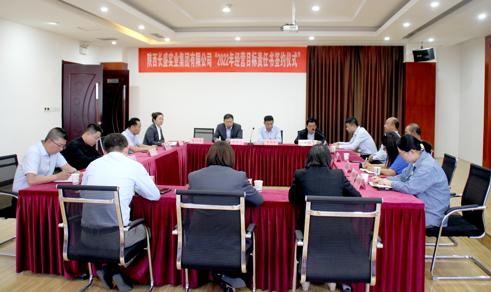 5月21日上午,陜西長(zhǎng)盛實(shí)業(yè)集團(tuán)舉行2022年經(jīng)營(yíng)目標(biāo)責(zé)任書(shū)簽約儀式。集團(tuán)公司董事長(zhǎng)徐團(tuán)林出席并聽(tīng)取安排經(jīng)營(yíng)目標(biāo)責(zé)任相關(guān)工作。總經(jīng)理徐永飛、副總經(jīng)理兼財(cái)務(wù)總監(jiān)黃建梅、副總經(jīng)理徐遼飛和集團(tuán)公司各部門(mén)、各子公司負(fù)責(zé)人參加會(huì)議。會(huì)議由董事長(zhǎng)助理黨世明主持。
